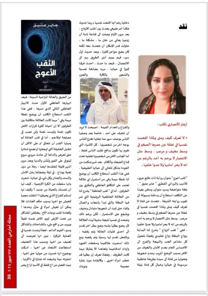 قراءة لرواية الثقب الاعوج من الاستاذة أزهار الأنصاري..
